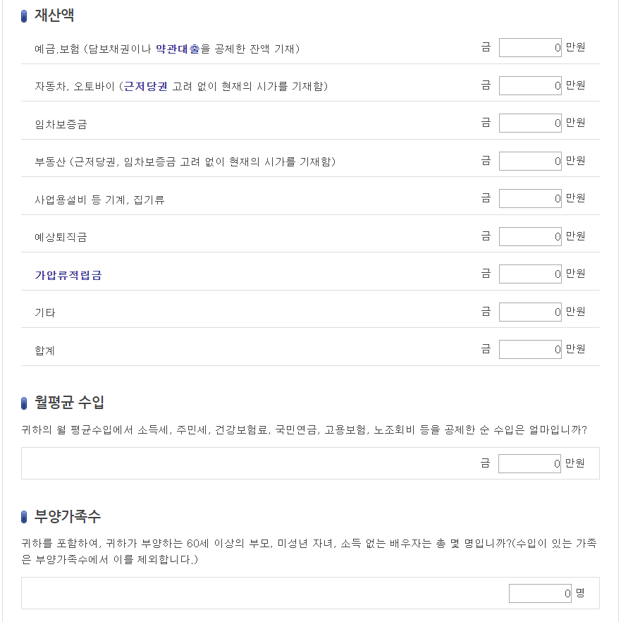 개인회생 자가진단은 입력한 정보 채권액, 재산액, 월평균 수입을 기초로 개인회생신청 대상자 여부, 개략적인 변제계획안의 내용이 확인 가능합니다.