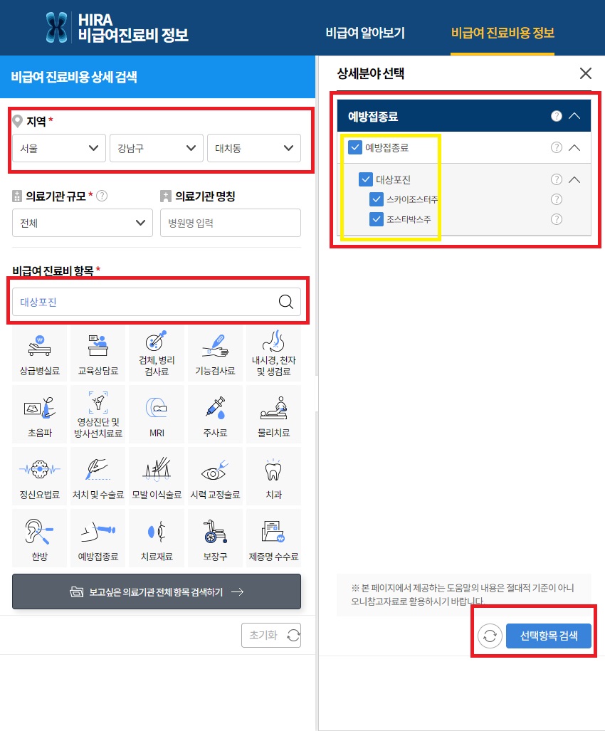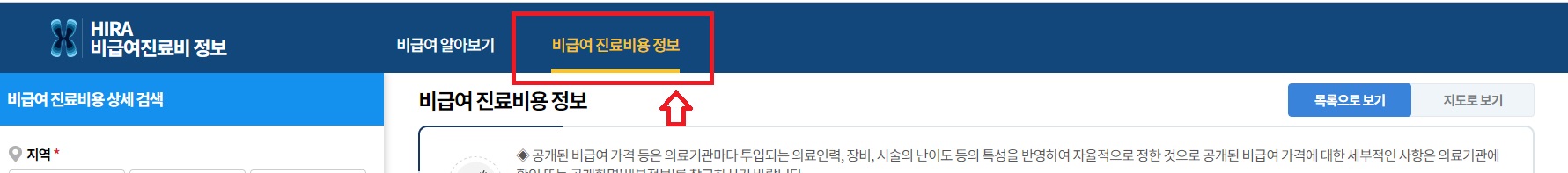 5) 비급여진료비 항목에 대상포진을 검색합니다.