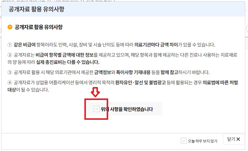 3) 공개자료 활용 유의사항을 체크합니다.