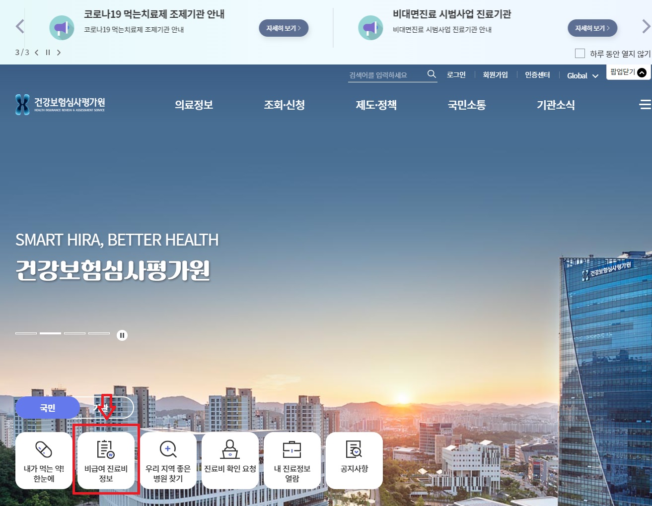1) 비급여 진료정보를 클릭합니다.