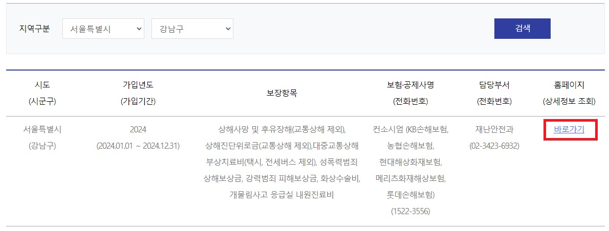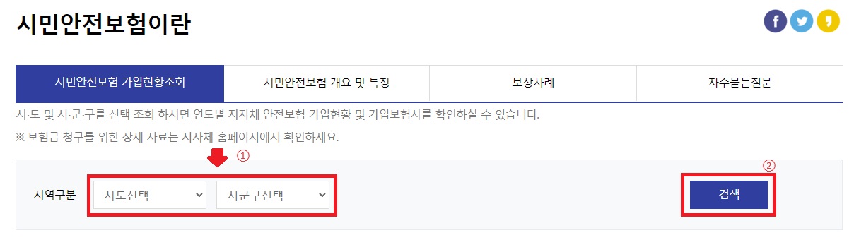 내 지역 시민안전보험 가입내역 확인