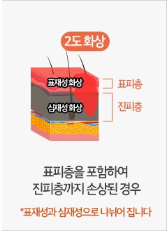 ㆍ2도 화상은 피부의 상피와 진피, 즉 피부의 상층과 중각층이 손상되는 화상입니다.