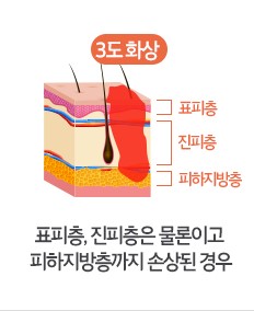 ㆍ3도 화상은 피부의 모든 층을 포함한 심부조직까지 손상되는 가장 심각한 화상입니다.