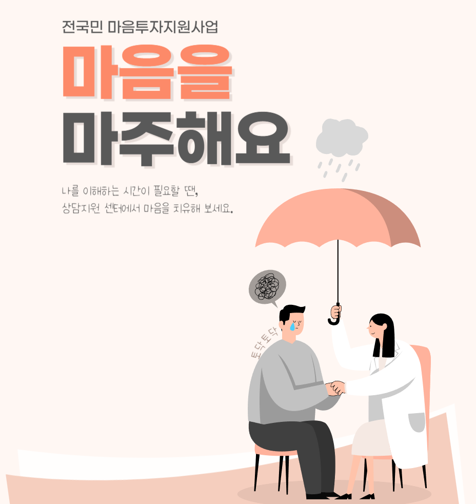 이럴 때 마음투자지원서비스를 이용해 보세요. 비용지원을 받을 수 있어 부담 없이 상담이 가능합니다.