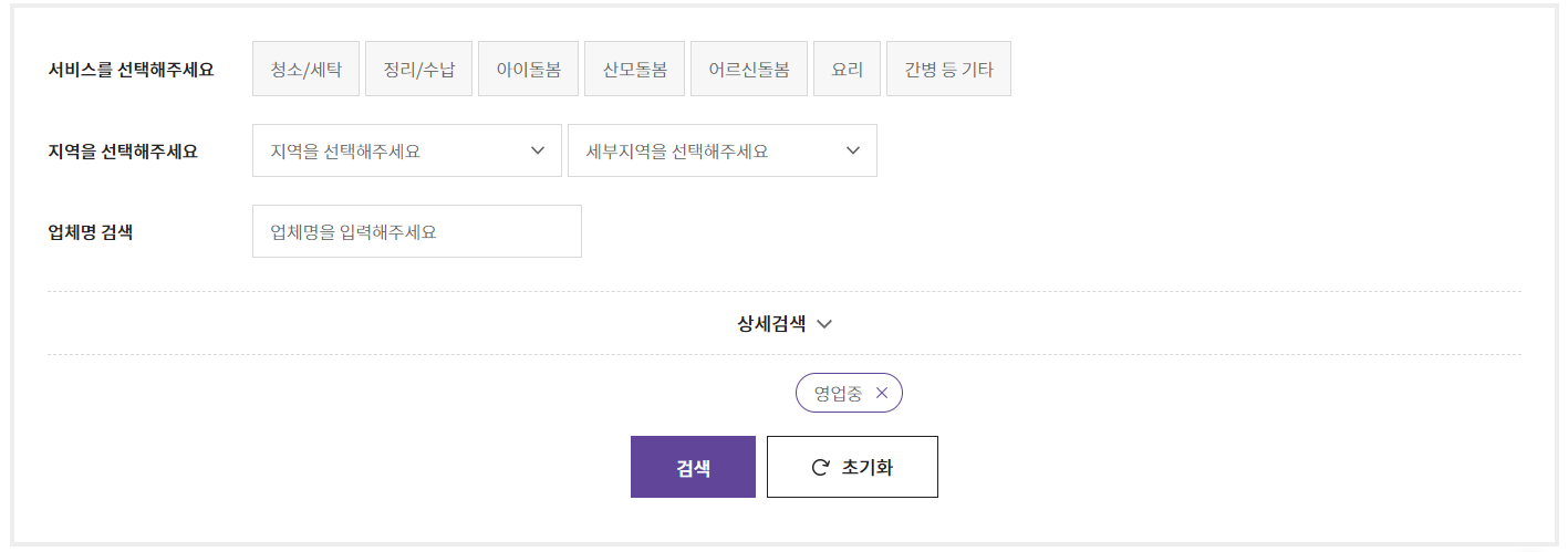 ① 가사서비스 제공기관 검색 : 홈페이지에서 자택과 가까운 가사서비스 제공기관(정부인증)을 검색하실 수 있습니다.