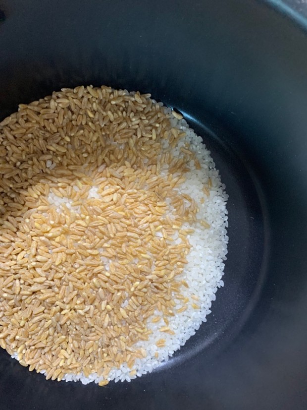 카무트와 물을 1:2의 비율로 섞고 , 센 불에서 끓이다가 중불로 줄여서 20분 정도 더 끓습니다.